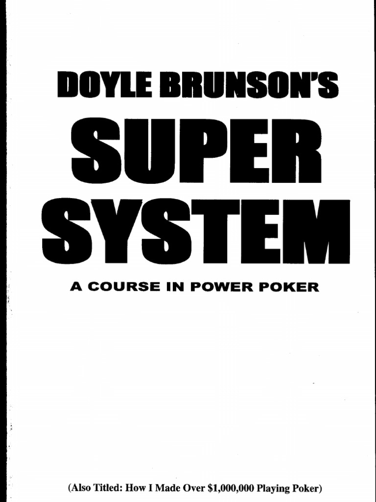 Doyle Brunsons Super System Chapter One - General Poker Strategy Introduction Tells ESP Superstitions Honor Being Competitive. Doyle Brunsons Super System A Course in Power Poker The greatest poker book ever written All experts and players agree. This was the bible of poker.