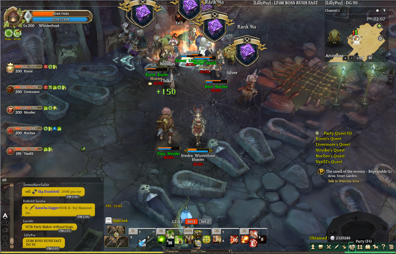 Party system and its flaws. Party members must be within a certain distance of each other to gain EXP and loot. These base classes can be advanced further for a total of 80 classes each with different abilities.