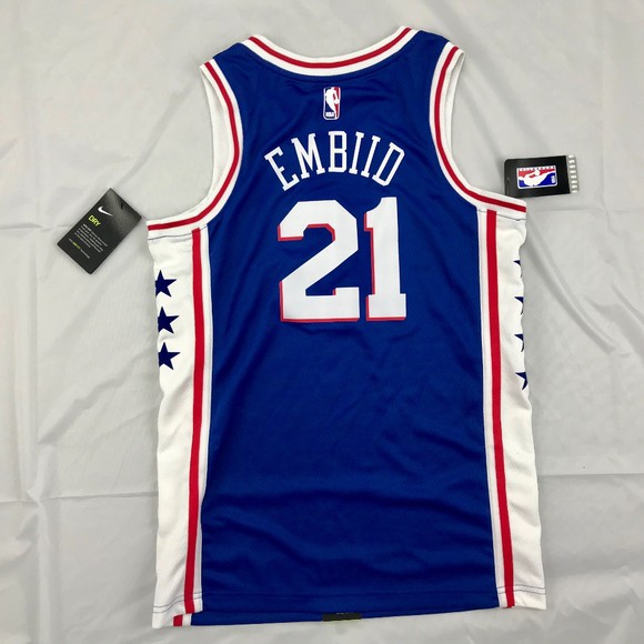 Fanatics Branded Joel Embiid Philadelphia 76ers Red Fast Break Replica Player Jersey - Statement Edition. Browse Philadelphia 76ers Store for the latest 76ers tshirts long sleeves tank tops and more for men women and kids. Weve got Joel Embiid Tee in styles that will help you rally your team to victory at the next Philadelphia game. Philadelphia 76ers Joel Embiid T-Shirts at the Official Online Store of the 76ers. Embiid dx shirt with the main component is 4-way stretch cotton fabric super durable super cool very good sweat absorption no shrinkage thick and not secret. Especially high-grade special ink does not color does not peel. An oversized T-shirt made from 100 organic cotton jersey.