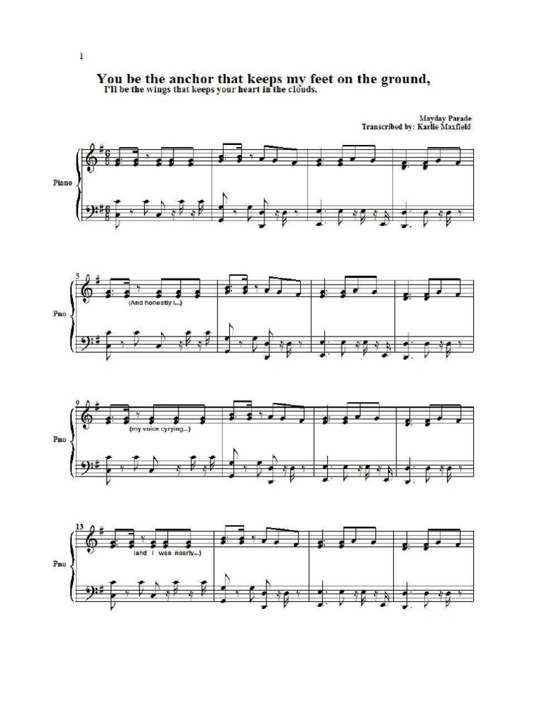 Mayday Parade Piano Sheet